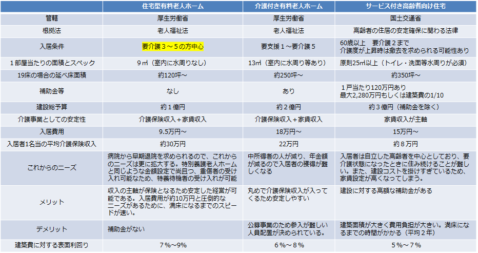 3.種類別老人ホームの比較表